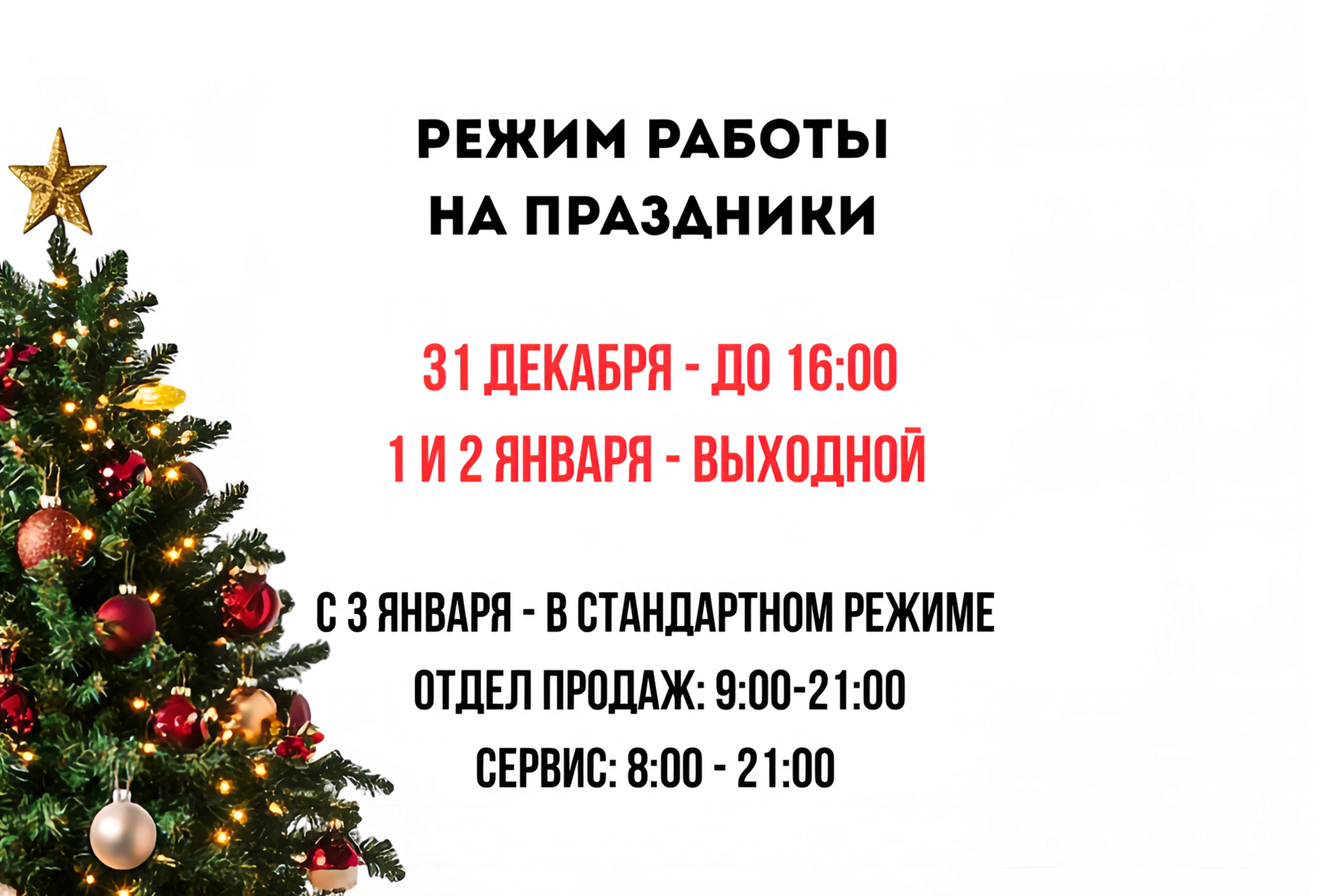 📅 31 декабря — работаем до 16:00